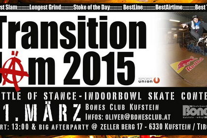Am kommenden Samstag, den 21. März 2015, geht der legendäre und allseits beliebte Indoor-Bowl-Contest Transition Jäm in der Kufsteiner Skatehalle des Skateboardclub Bones ab. Die …